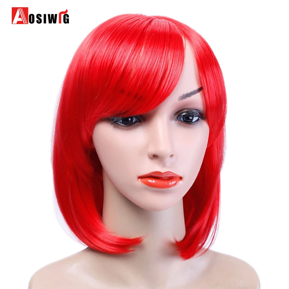 AOSIWIG 12 дюймов Mdeium длина прямой Лолита косплей парик с челкой красный розовый коричневый парик термостойкий синтетический парик для женщин