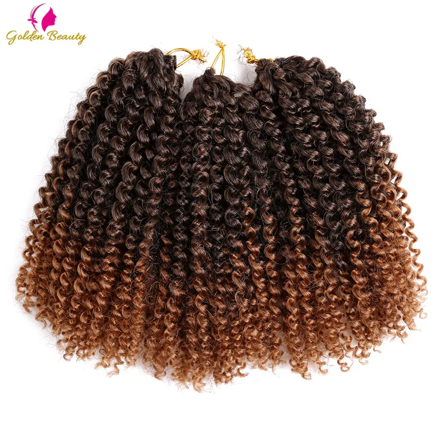 Косички для наращивания волос, 8 "12", черные косички, синтетические, богемные, волнистые, Омбре, Марли, вязаные крючком волосы, золотистые