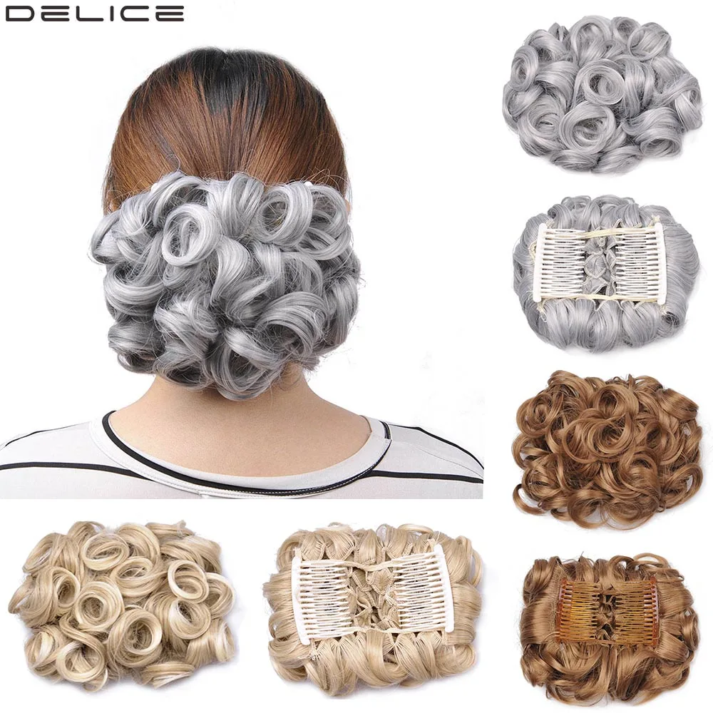 Delice женские элегантные курчавые шиньоны, синтетический серый Эластичный пучок волос с двумя пластиковыми расческами, накидка для волос на свадьбу