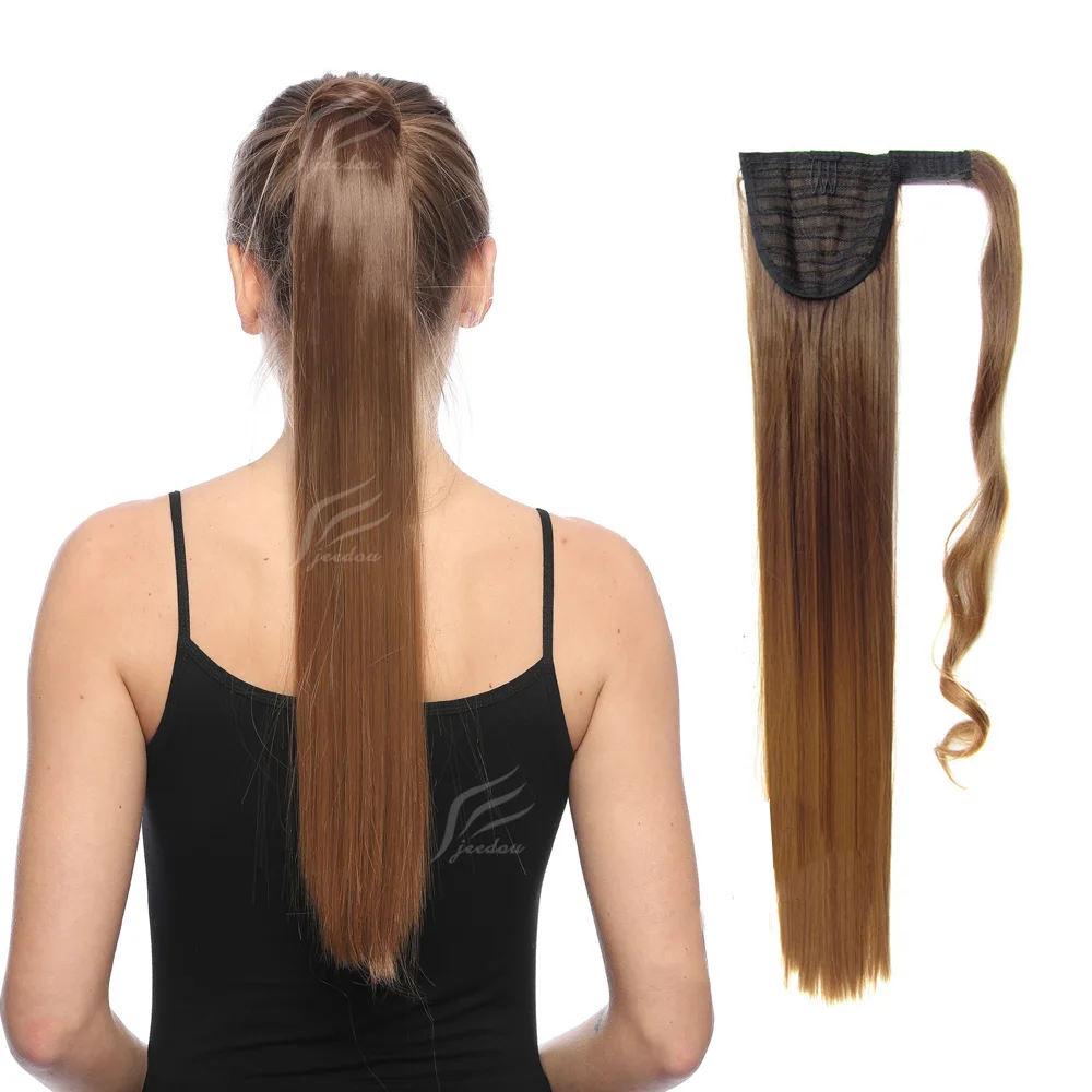 Jeedou прямые синтетические хвосты для волос 22 "55 см 90 г красный розовый цвет смесь Омбре цветная намотка вокруг конского хвоста наращивание во...