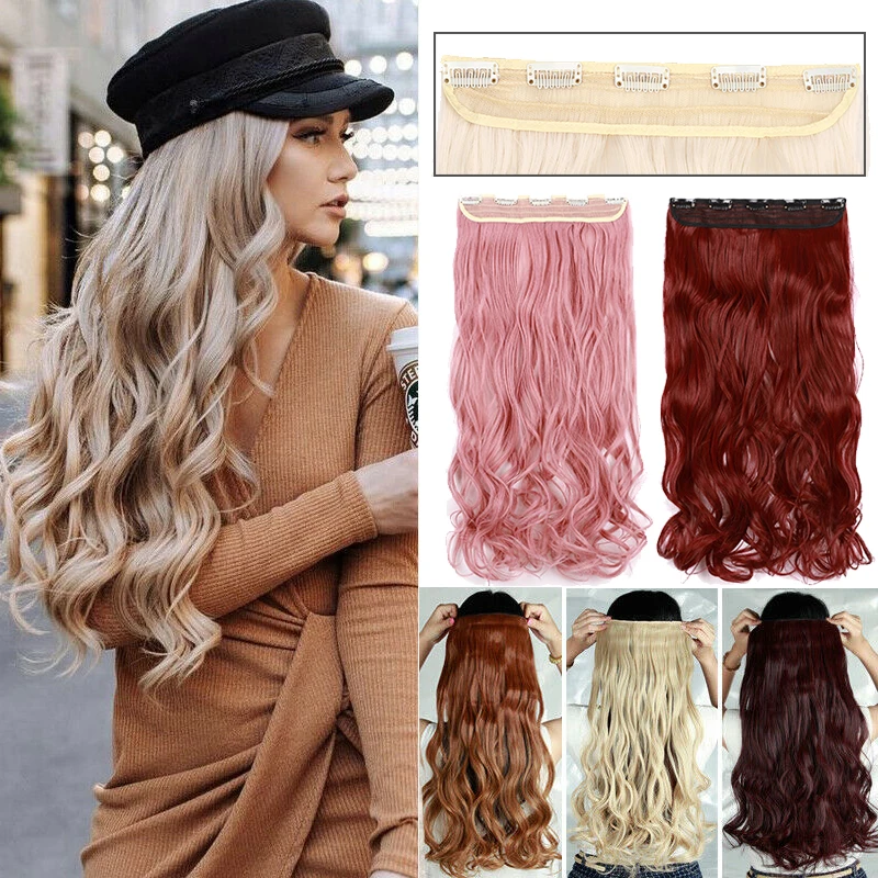 S-noilite 24 "волосы синтетические на зажимах в наращивание волос длинные волнистые вьющиеся Женские шиньоны 5 зажимы ins блондинка розовый красны...