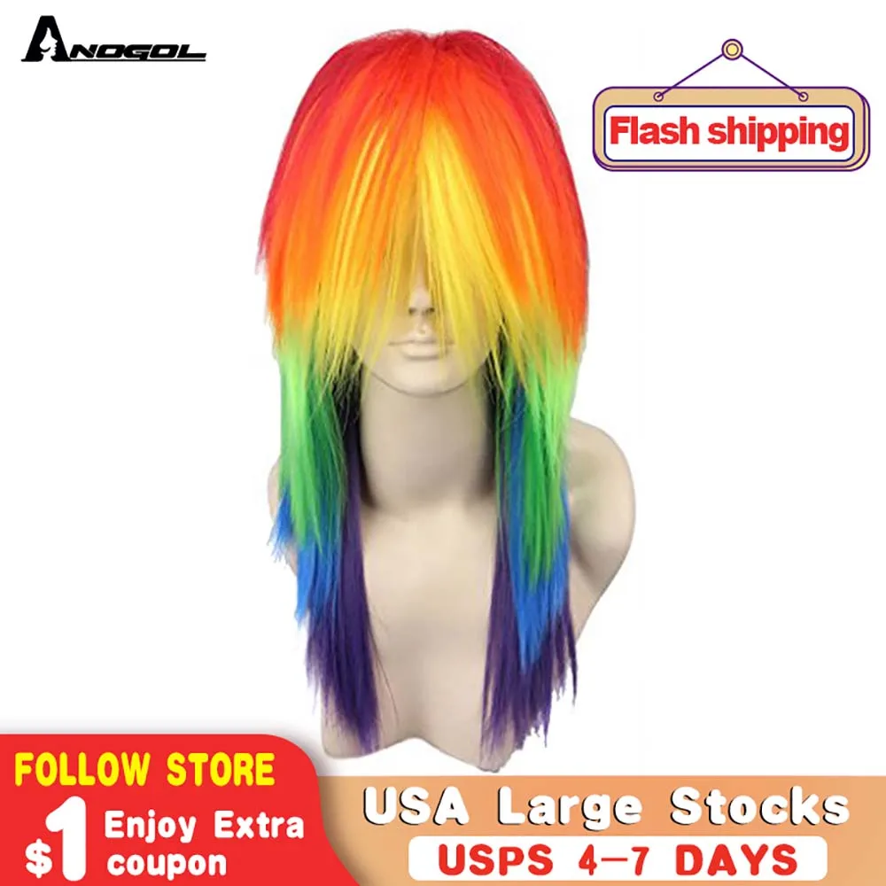 Anogol мой маленький пони хвостик стиль радуга цвет тире желтый розовый сторона часть красный зеленый фиолетовый Синтетический Косплей парик для вечерние