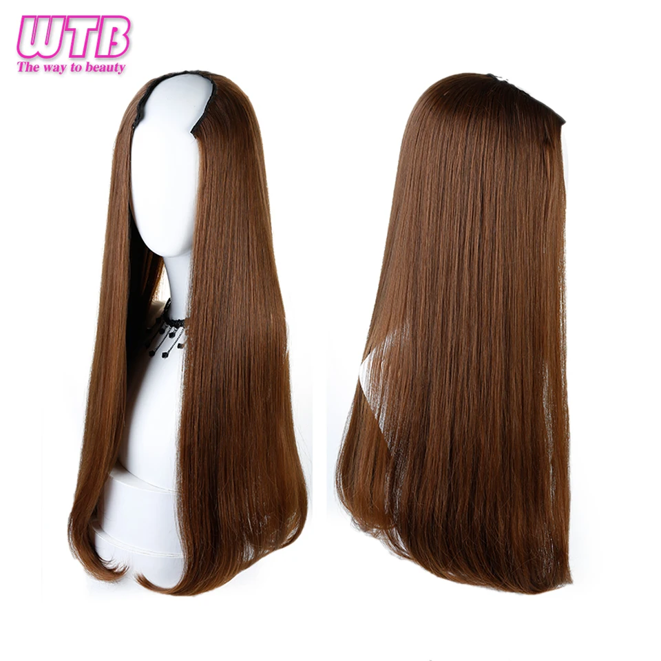 WTB длинные прямые U форма d половина парик для вечерние термостойкие синтетические волосы U форма Искусственные парики