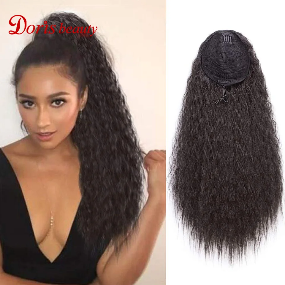 Doris Beauty Long Afro Kinky Curly Ponytail Extension 22 Inch Synthetic Drawstring Corn Hair Piece for Women Black Brown