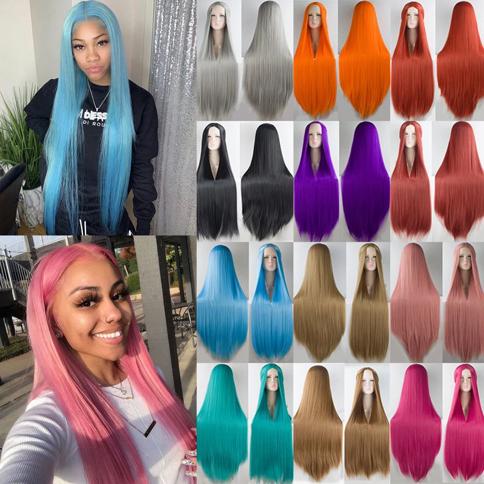 Длинные прямые Косплей парик черный фиолетовый черный красный розовый синий темно-коричневый 100 см синтетические волосы парики BUQI