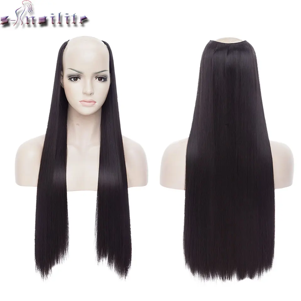 S-noilite 24 дюйма длинные прямые заколки в одном куске для наращивания волос Синтетические заколки в волосах черный коричневый поддельные шинь...