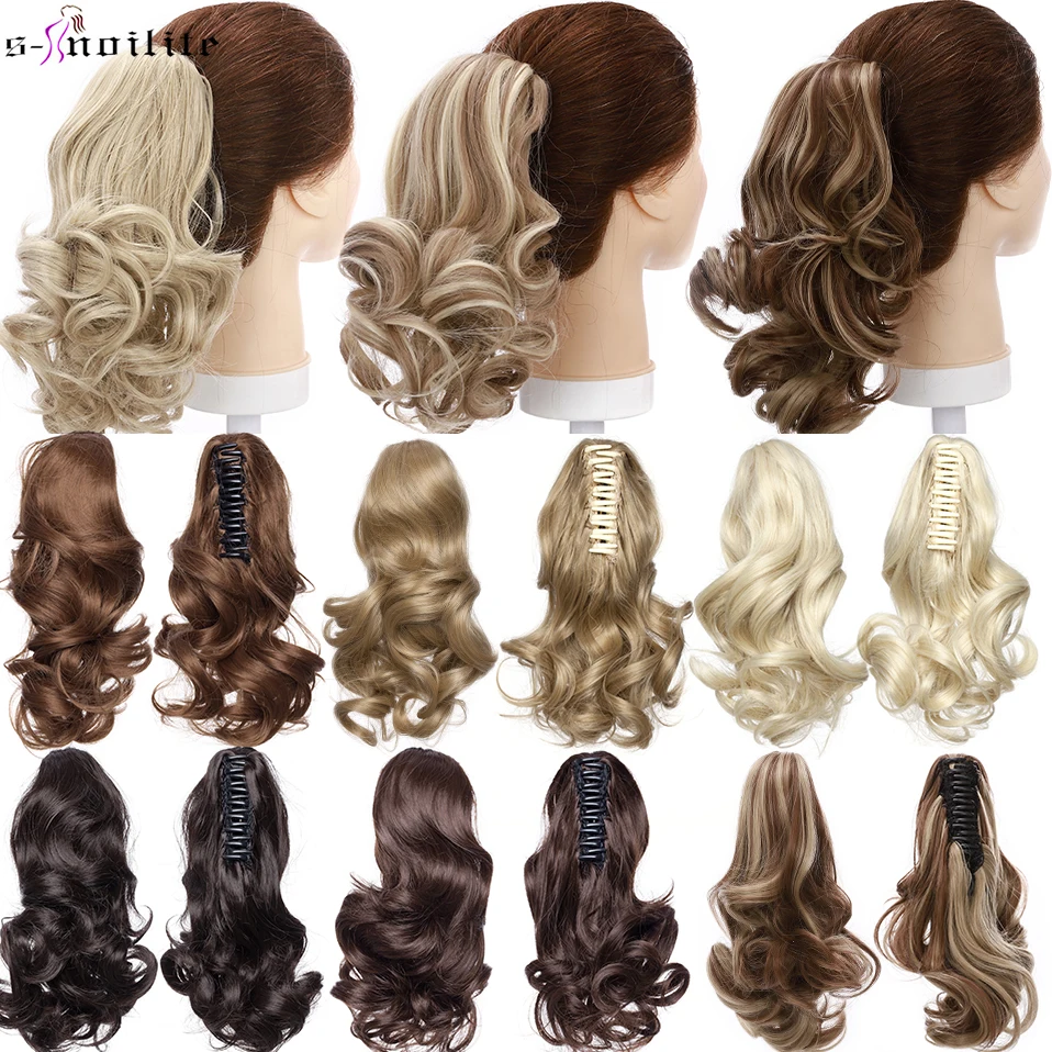 12 "короткие волнистые конский хвост наращивание волос коготь На хвостике синтетический черный коричневый блондин женский шиньон волосы ко...