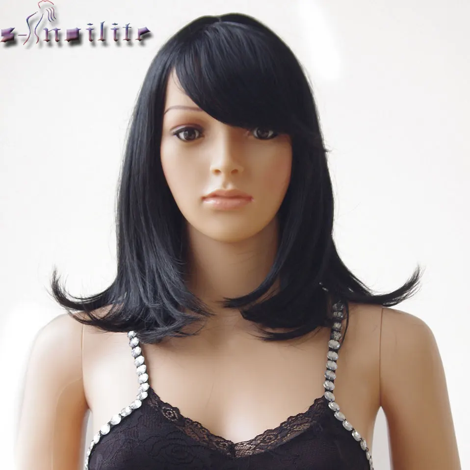 AISI волос 12 ''черный парик Боб короткие синтетические парики для женский, черный жаропрочных шиньоны