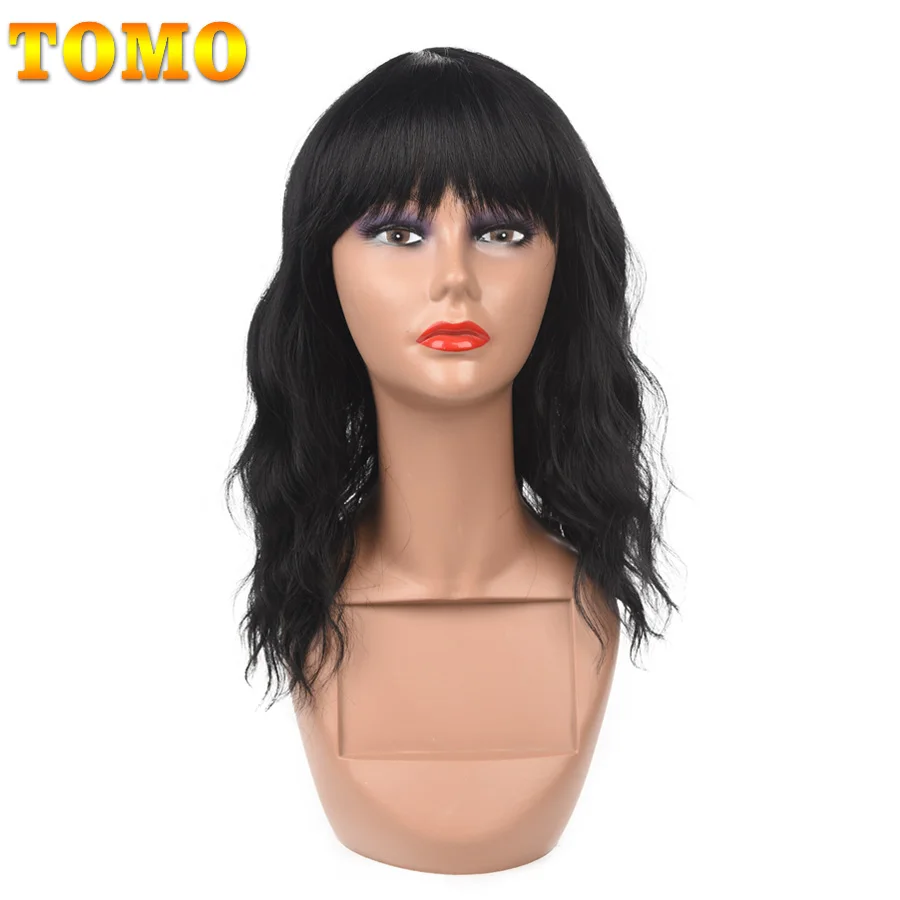 TOMO, 17 дюймов, коричневые волнистые парики с челкой, черные натуральные синтетические волосы для причесок, женский короткий парик, термостой...