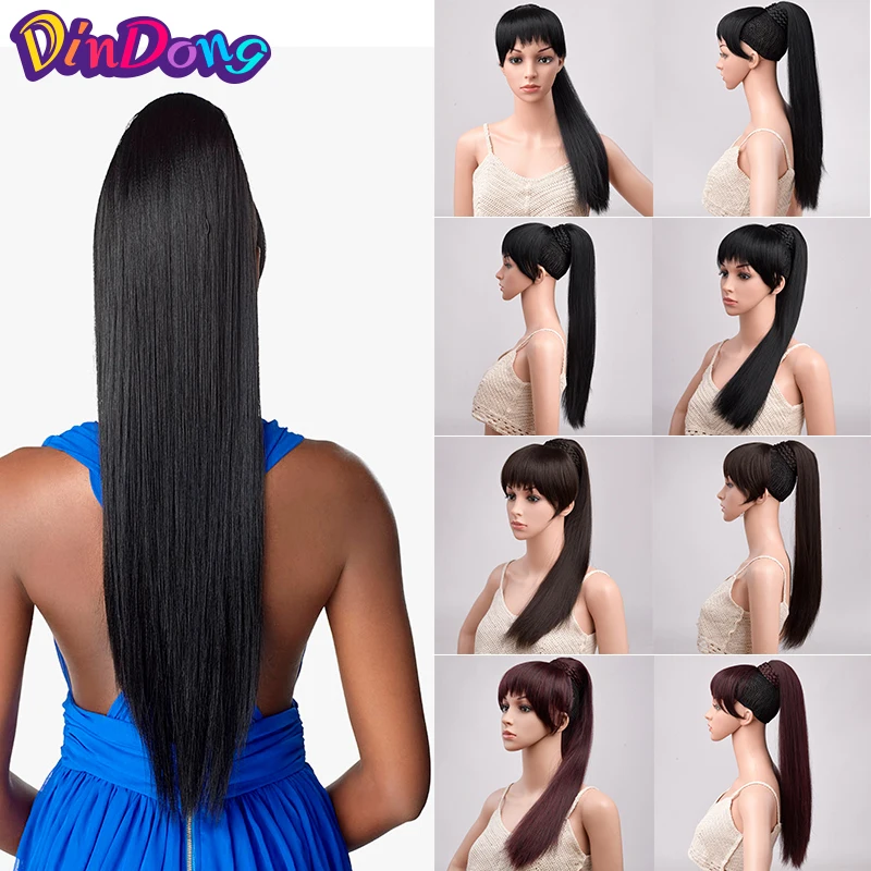 DinDong прямой конский хвост с челкой клип в наращивание волос афро кудрявый шнурок хвост афро американский булочка