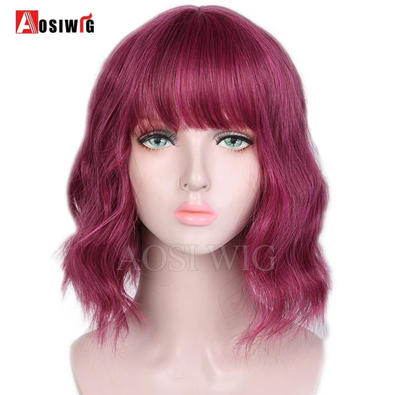 Женский короткий волнистый парик AOSI Bob, синтетический микс, Пурпурный Оранжевый Черный Темно-коричневый, для косплея, Термостойкое волокно