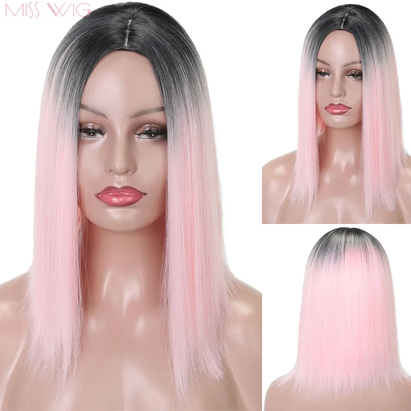 MEIFAN Ombre розовый/черный прямые термостойкие синтетические волосы парики для женщин натуральные волосы короткие боб Косплей или вечерние пар...