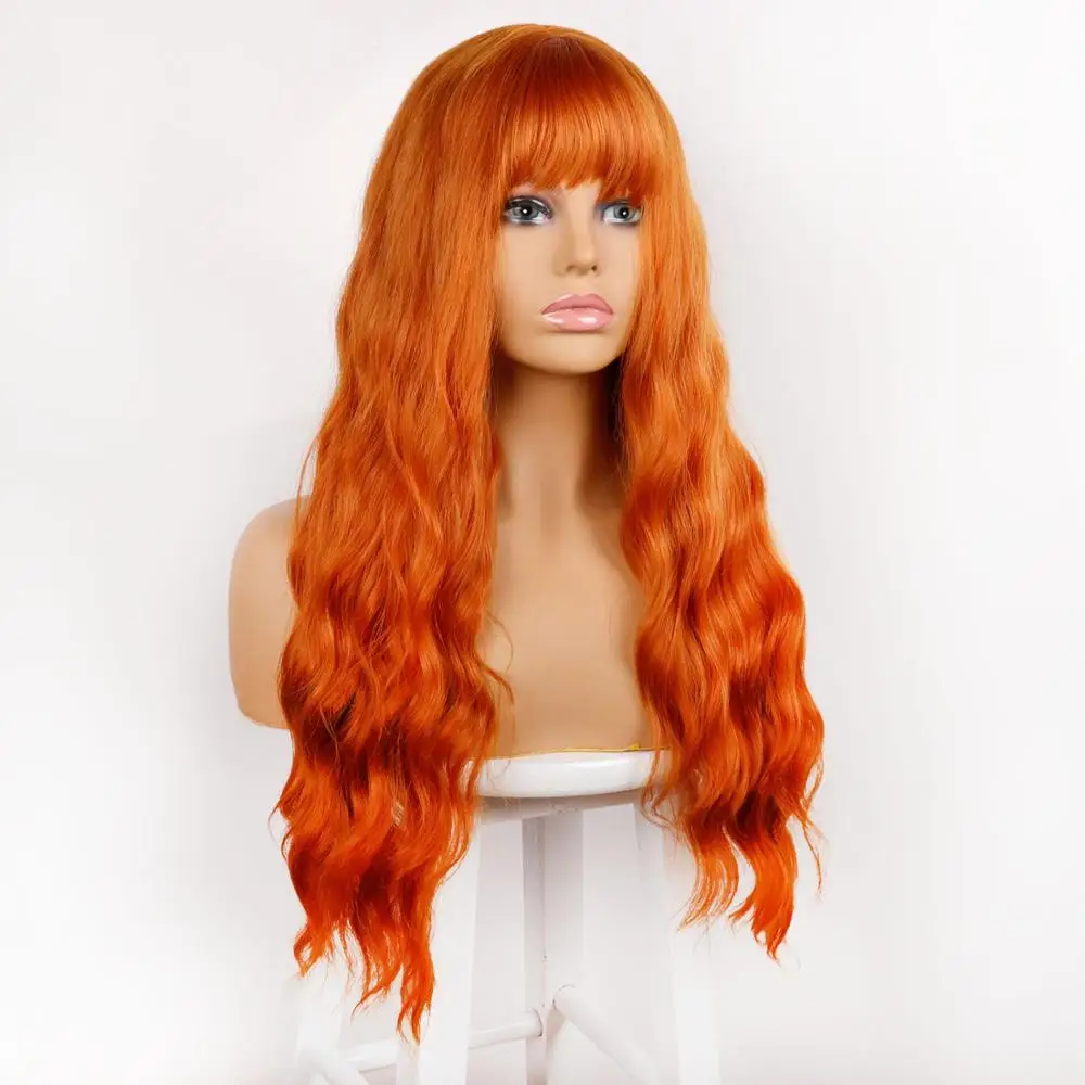 Омбре волнистые парики Черный Коричневый блонд оранжевый средняя часть косплей синтетические парики с челкой для женщин длинные волосы парики поддельные волосы
