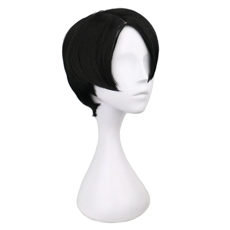 QQXCAIW короткие прямые черные синтетические волосы для косплея Levi/rivaile 30 см