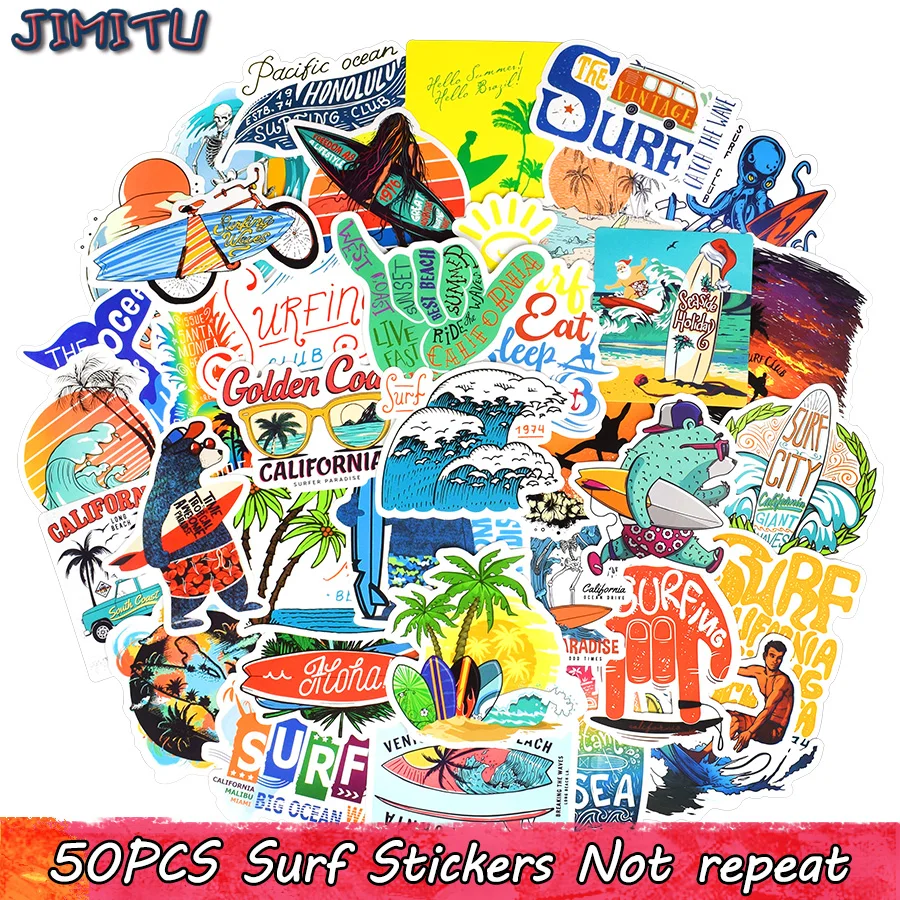 50 шт., летние наклейки для серфинга, пляжа, путешествий, граффити, наклейки для серфинга, сделай сам, для доски для серфинга, ноутбука, багажа, велосипеда, планшета, бутылки для воды