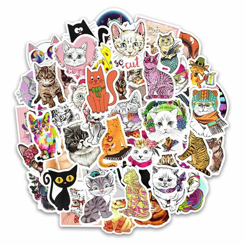 50 шт./лот милый кот стиль наклейки с котенком для компьютера скейтборд холодильник Велосипедный спорт ПВХ водостойкая наклейка канцелярски...