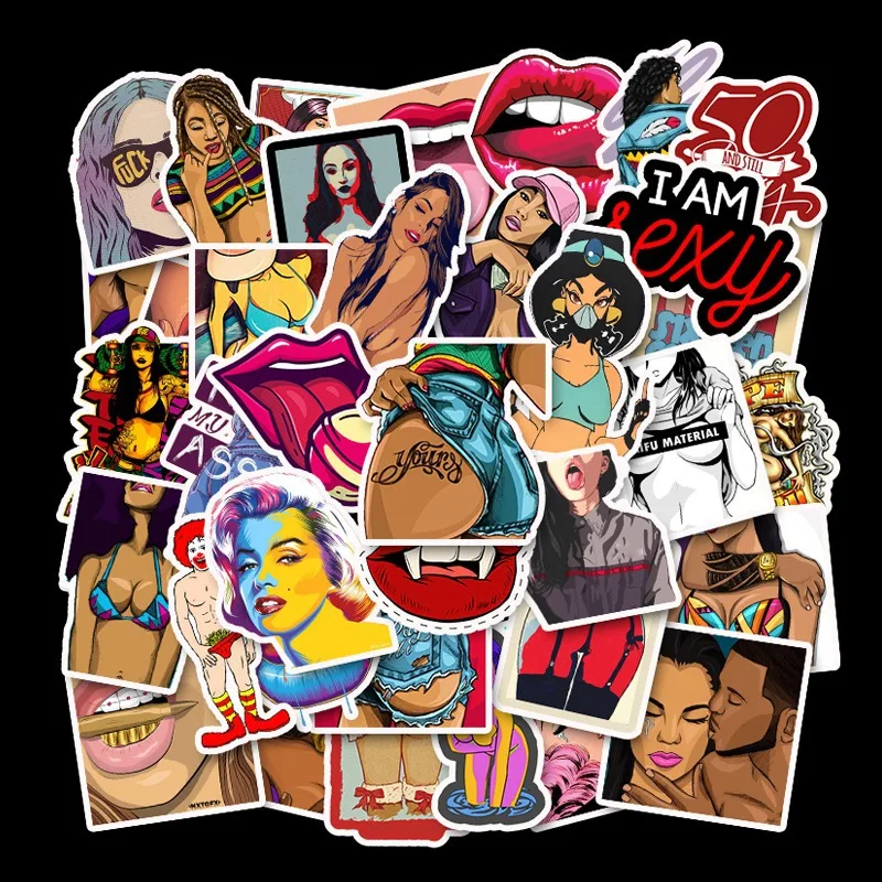 50 шт. Мультяшные сексуальные красивые персональные Съемные Наклейки на колесиках чехол для ноутбука скейтборда гитары каракули наклейки на заказ