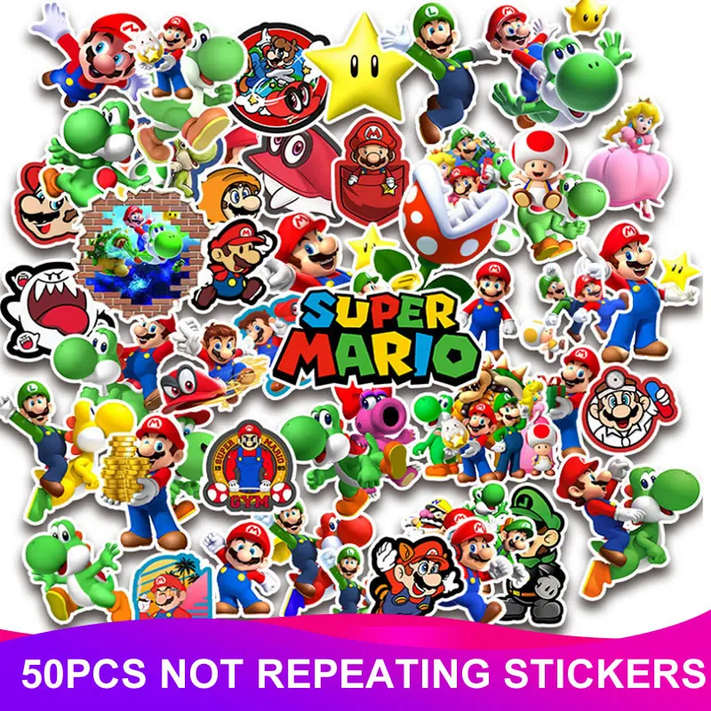 50 шт./упак. мультяшный рюкзак с принтом супер наклейки с изображением Марио ПВХ Водонепроницаемый ноутбук, масштабных дорожных чемоданов мо...
