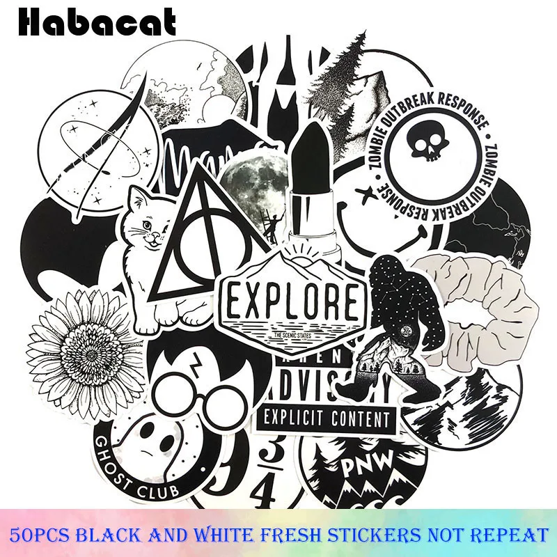 50 шт./компл. черно-белые свежие граффити Стикеры с мультяшным рисунком подарки игрушки для детей самодельный скейтборд ноутбук автомобиль т...