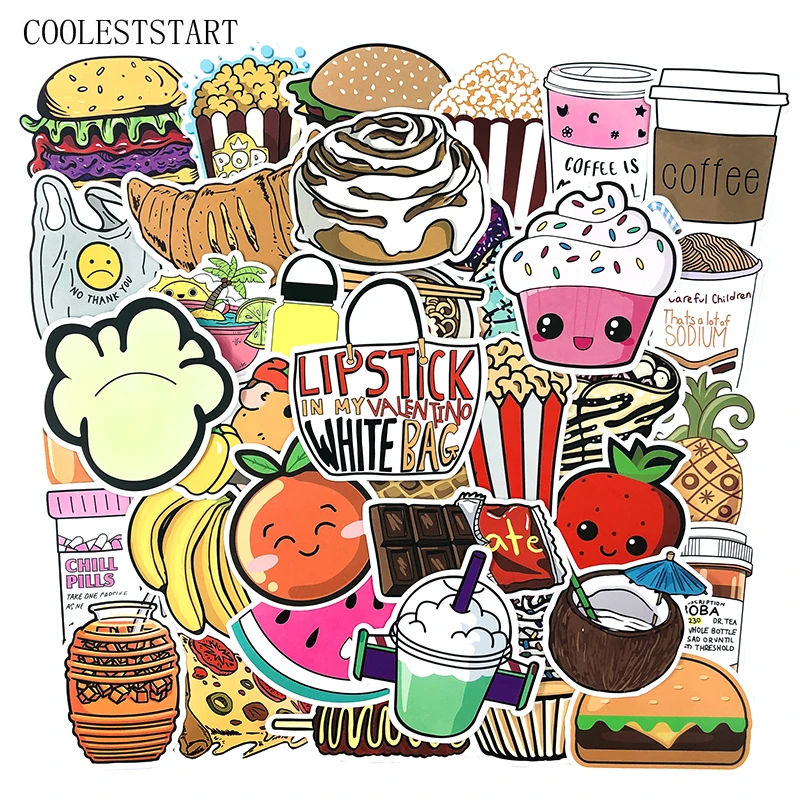 50-100 ⑤ упак. Мультяшные забавные наклейки на закуски для ноутбука, багаж, мотоцикл, телефон, скейтборд, игрушки, автомобильный дневник, Pegatinas гитара