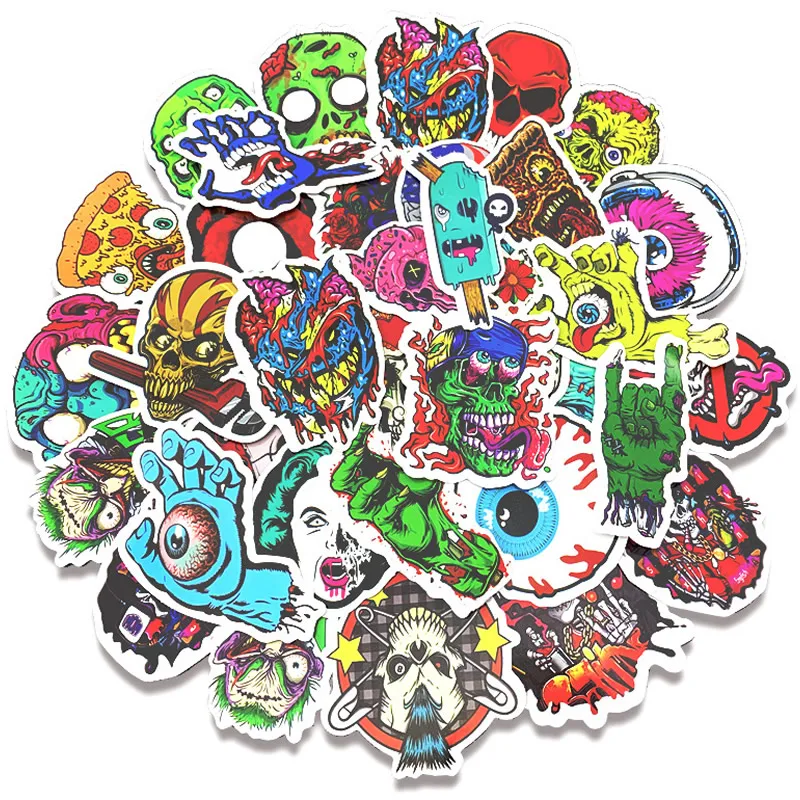 50 шт./упак. личностный Череп Наклейки для ноутбука скейтборд багаж чемодан телефон мотоцикл забавные водонепроницаемые ПВХ наклейки детски...