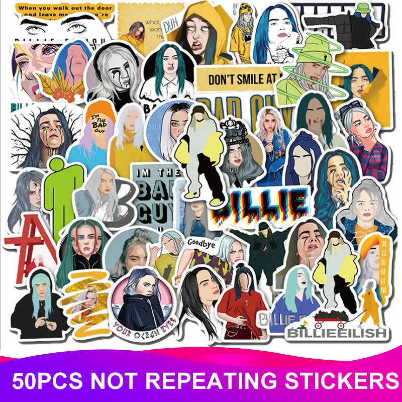 50 шт Упаковка Билли эйлиш стикер с рисунком из мультфильма водонепроницаемый чемодан «сделай сам» ноутбук гитара игрушка для скейтборда пр...