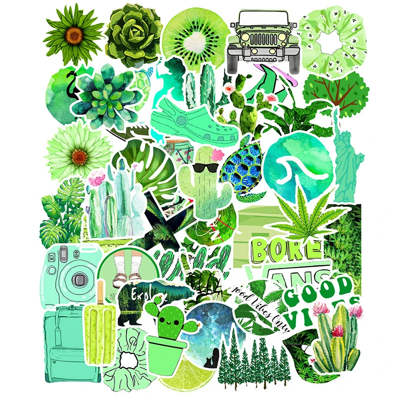 50 шт. стикеры s зеленый Защита окружающей среды водонепроницаемый Vsco Стикеры для девочек на ноутбук PC телефон чемодан игрушка стикер