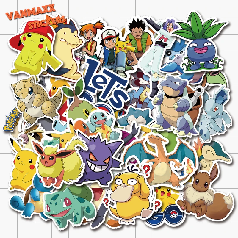 VANMAXX 50 PCS Pokemon Pikachu Cartoon Stickers Waterproof Vinyl Decal for Laptop Helmet Bicycle Luggage Guitar Car Stickers