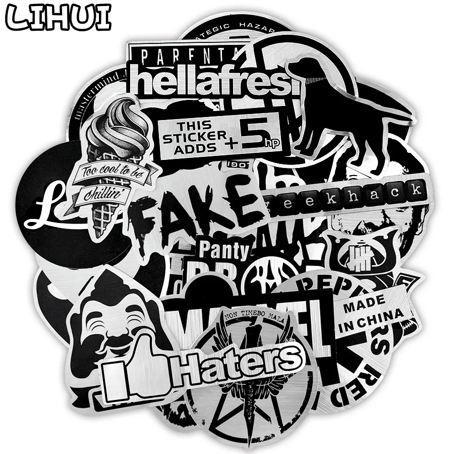 50 шт. металлик Цвет Черный и белый стикерные игрушки для детей бренд панк Наклейки JDM DIY ноутбука чемодан для скейтборда автомобиля