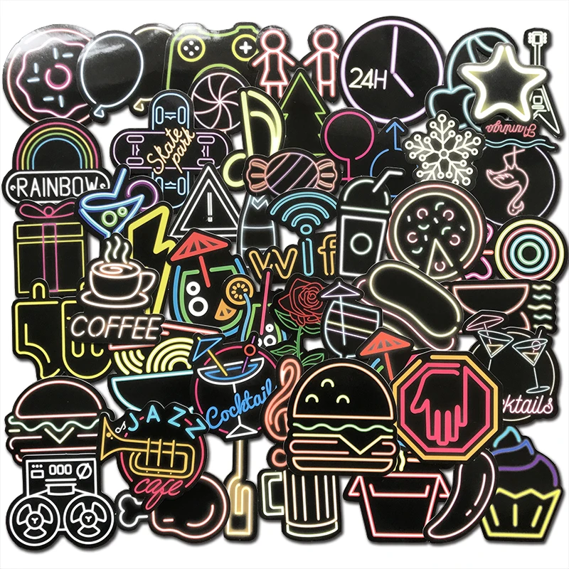 AQK 50 шт. красочный Неон световые наклейки милый Бар Декор аниме значок животных наклейки-граффити для скейтборда багажа ноутбука велосипедо...