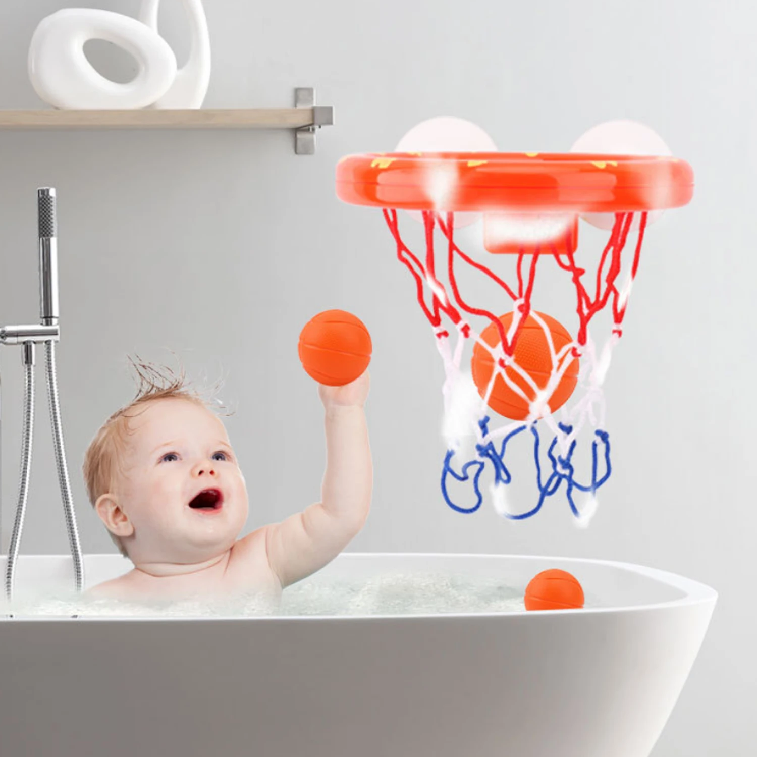 Забавные мини игра баскетбол для ванной игрушки с обручем шары присоска чашки для ванной Ванная комната детей