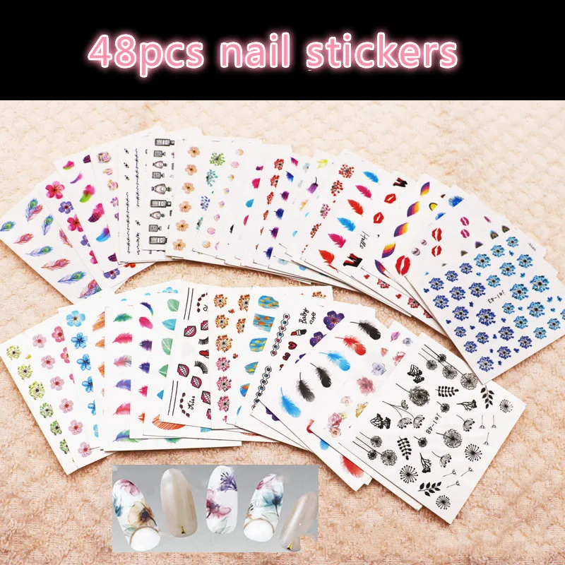 48 листов сладкий ручной Art Flower карманный внешний аккумулятор Смешанные Красочные Цветочные наклейки Маникюр украшения Красота модная обув...
