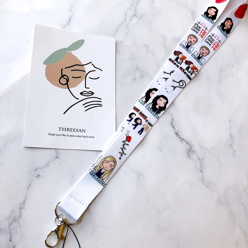 Серый анатомический брелок, мультяшный Грей, ремешок для телефона, женский ремешок на шею, ремешки для ключей для удостоверения личности, подарки для доктора
