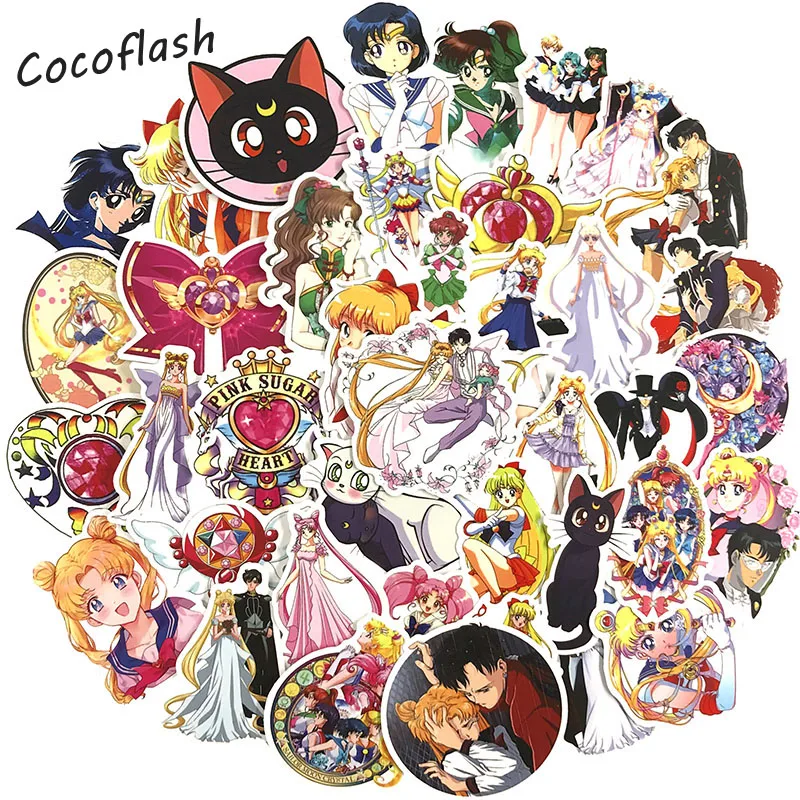 50 шт./компл. новые творческие высокое качество с рисунком из аниме «Сейлор Мун» Стикеры мультфильм Водонепроницаемый Стикеры s для ноутбука чемодан велосипед для детей