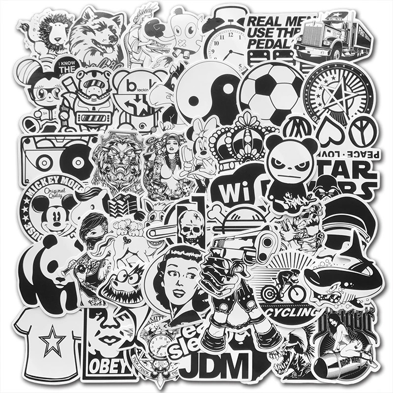50 шт. водонепроницаемые черно-белые наклейки мотоцикл Граффити стикер бомба для DIY СКЕЙТБОРД гитара багаж ноутбук велосипед игрушечные наклейки