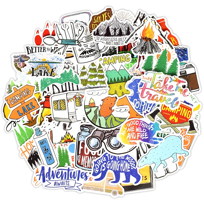 50PCS Camping Adventure Graffiti Stickers For Car Styling Bike Motorcycle Phone Laptop Travel Luggage DIY TOY Decals Sticker F4