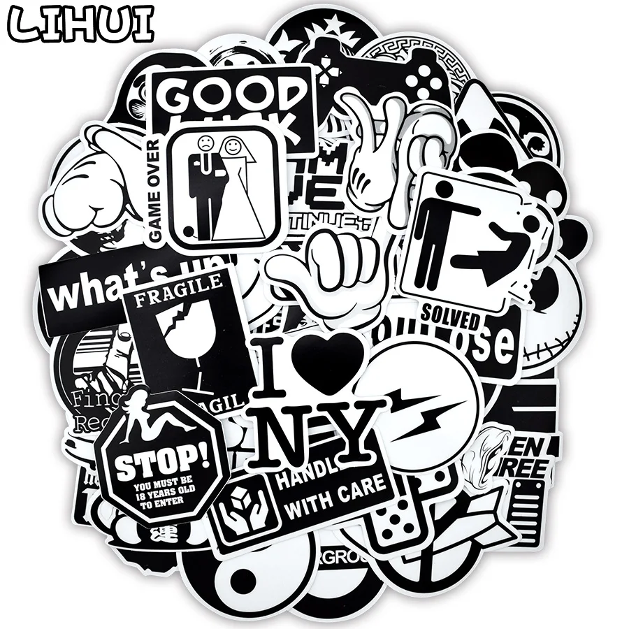 100 шт Прохладный прозрачный Черный и белый стикерные игрушки для детей граффити рок брендовые наклейки для «сделай сам» ноутбук чехол для г...