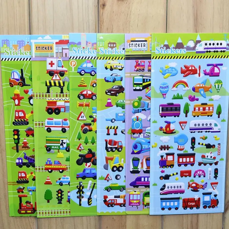 4 листа милые дети 3D автомобиль грузовик пузырь девушка наклейки для мальчика ребенок аниме липкий дети транспорт автомобиль Забавный образовательный стикер игрушки