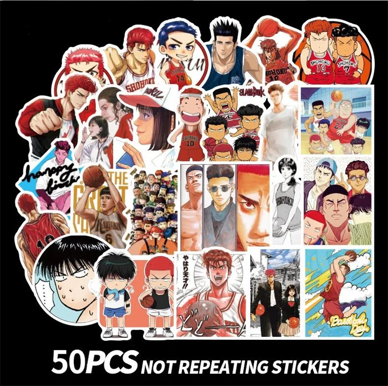 50 шт. SLAM DUNK аниме Наклейки для декора стен холодильник Мотоцикл Велосипед холодильник Стикеры для автомобиля ноутбука без повтора