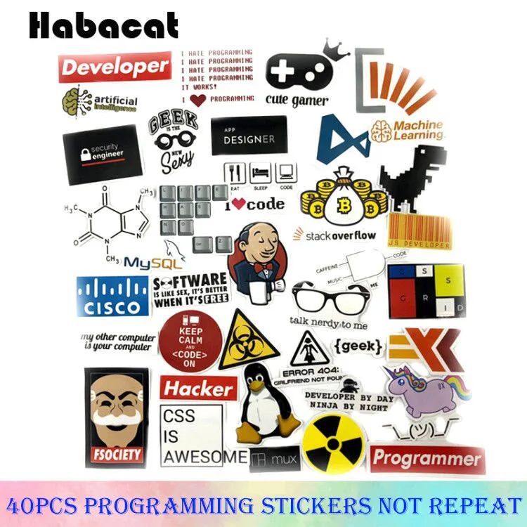 40 шт./компл. sql-программирование Geek хакер Bitcoin разработчик язык приложение логотип забавный ноутбук телефон водостойкие наклейки