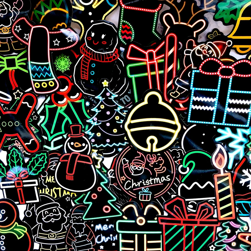 50 шт. Рождественский неоновый светильник, наклейка s Санта Клаус, снежинка, колокольчик, наклейка для ноутбука, мотоцикла, скейтборда, багажа...