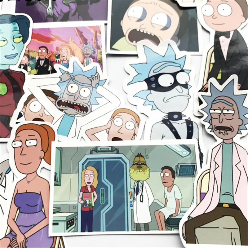 50 шт., американская драма, новинка, Рик и Морти, забавная наклейка для автомобиля, ноутбука, велосипеда, мотоцикла, ноутбука, водонепроницаем...