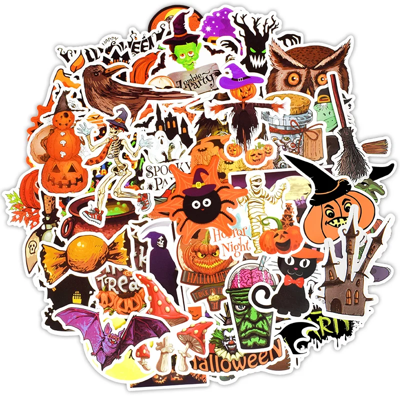 50 шт., забавная наклейка на Хэллоуин, подарок s, милая наклейка в стиле граффити на Рождество, тыква, ведьма, сделай сам, блокнот, украшение ком...