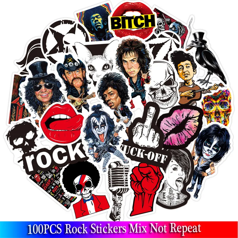 100 шт Смешанные ужас наклейка в стиле рок музыки Ретро группа граффити наклейки JDM для DIY Guitar мотоцикл ноутбук Чемодан наборы наклеек