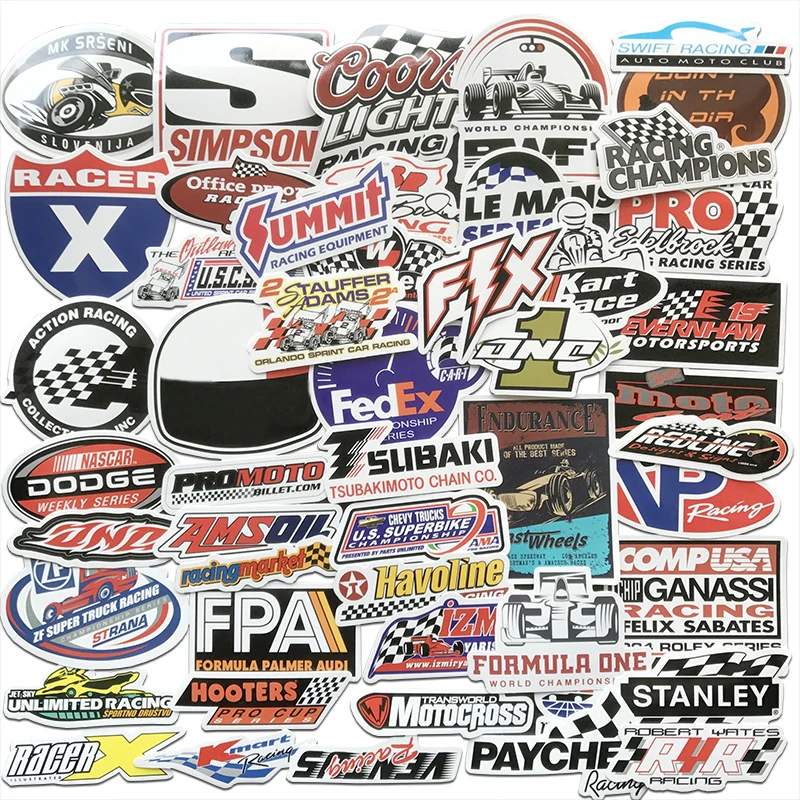 Наклейки для гоночных автомобилей AQK, 50 шт., F1, для самостоятельного стайлинга автомобиля, наклейки для мотокросса, шлема, скейтборда, багажа, ноутбука