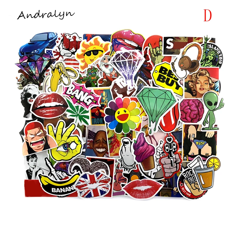 52 шт./компл. Рок & Roll смешанные хип хоп наклейки граффити ПВХ игрушка для ноутбука скейтборд чемодан чехол для гитары музыка PunkF5