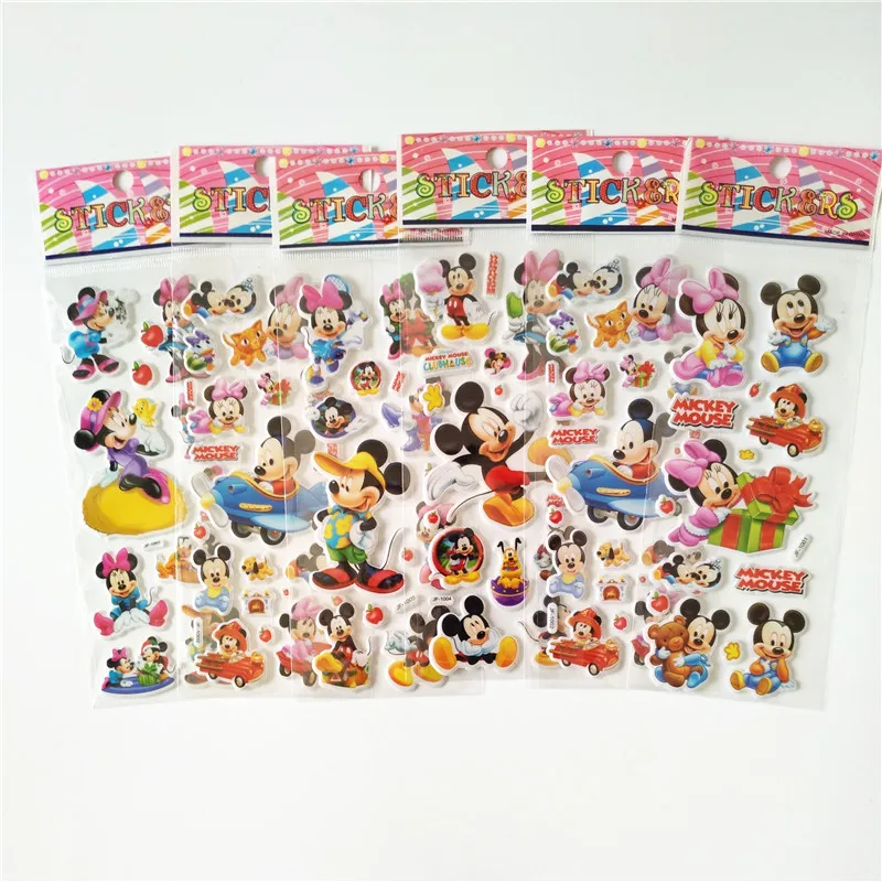 6pcs 3D - мышь микки наклейки из пвх, минни пузырь DIY единорог китти девочек, мальчиков, дети, подарки, награды игрушка