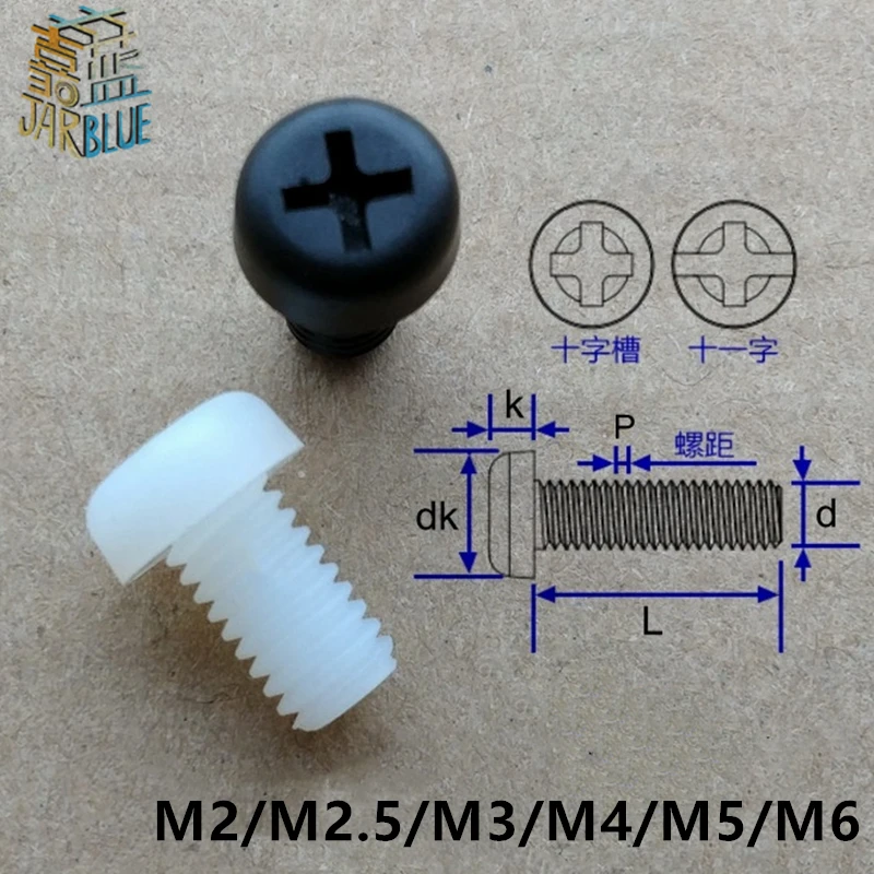 50 шт. нейлоновый винт M2 M2.5 M3 M4 M5 белый или черный нейлоновый пластиковый изоляционный крестик Phillips Утопленный Круглый шуруп