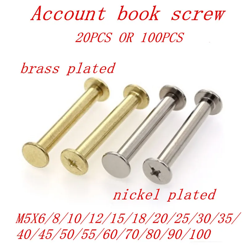 20-100 шт M5 * 6/8-100 никелевые или латунные винты Chicago, заклепка с щелчком книги, задний ложевой винт, винт для переплета фотоальбома
