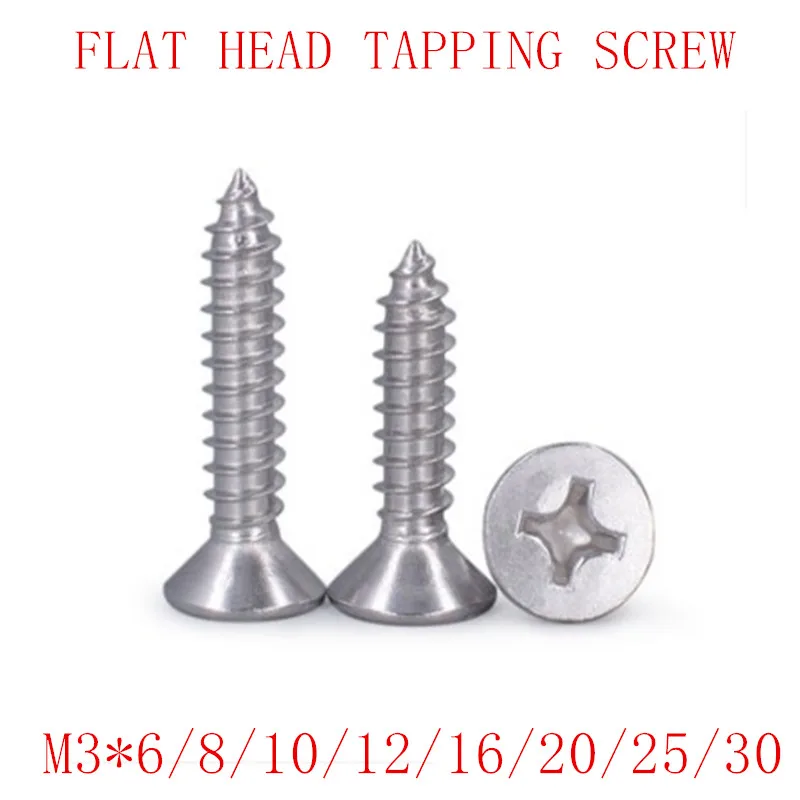 M3, 50 шт DIN7982 ISO7050 304 Нержавеющая сталь винты M3 * 6-40 мм с плоской головкой, крестообразный шлиц потайной самонарезающие шурупы